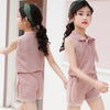 Brand Name: ZERONGZHIYIStyle: FashionCollar: V-NeckClosure Type: NoneMaterial: COTTONMaterial: PolyesterGender: GirlsSleeve Length(cm): SleevelessSleeve Style: Butterfly SleeveFit: Fits true to...